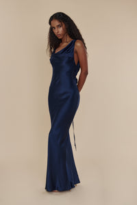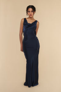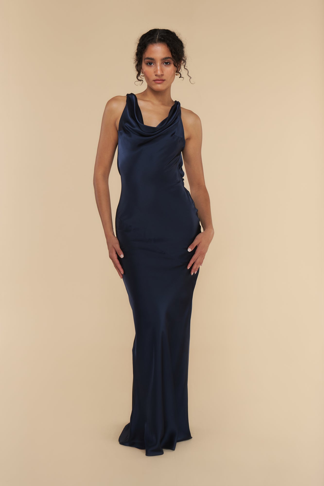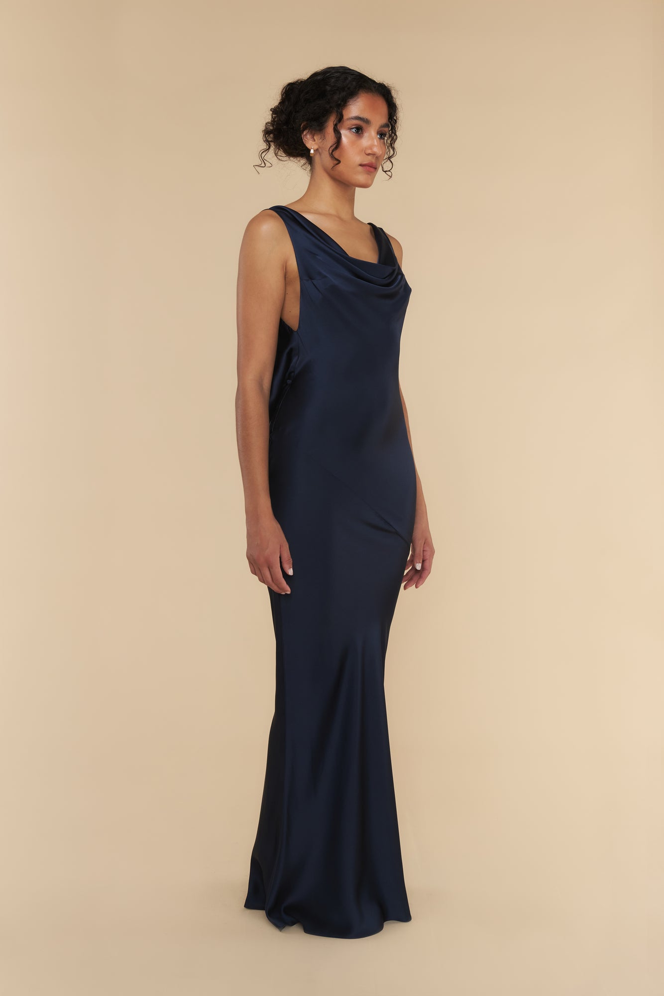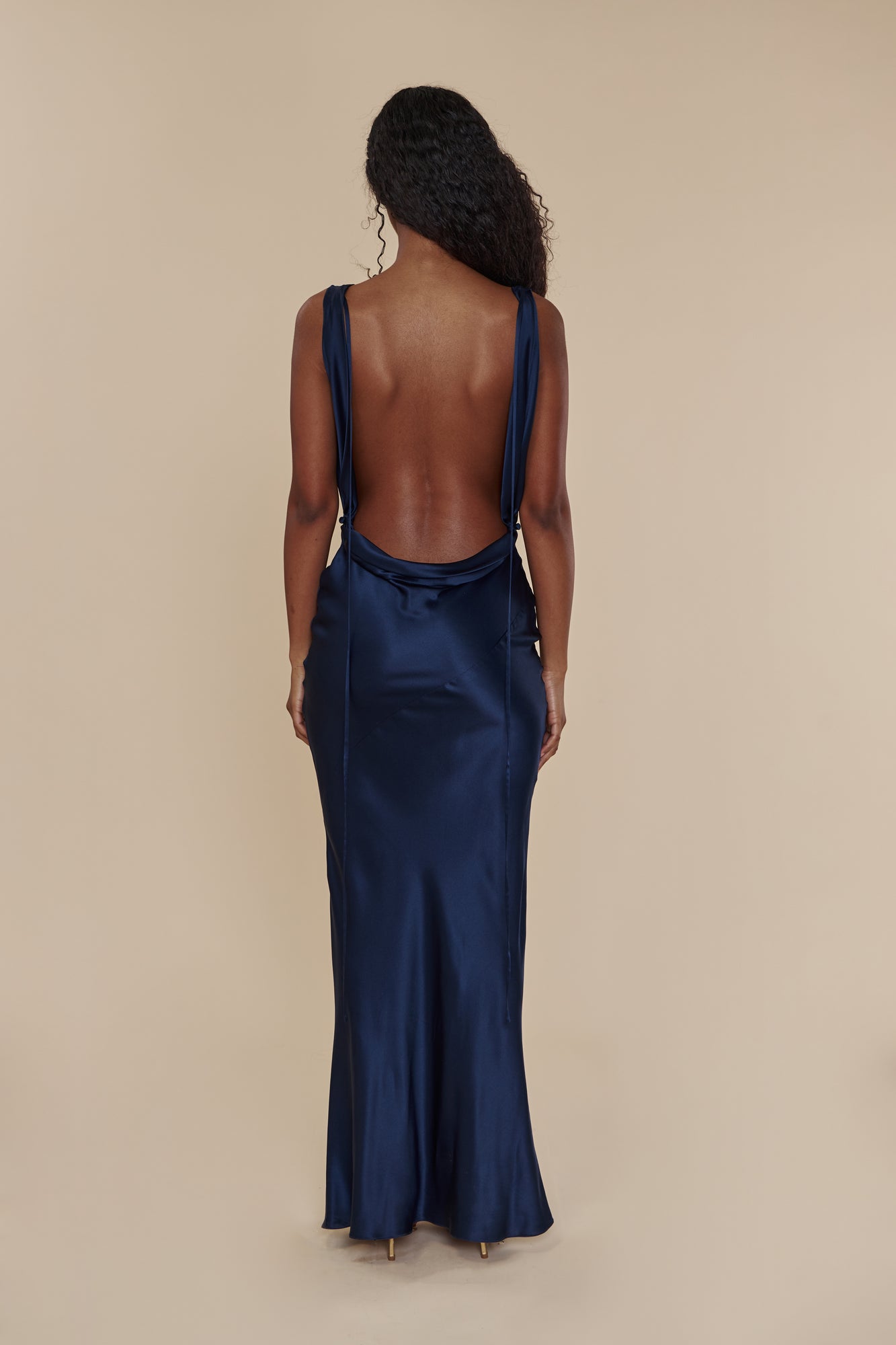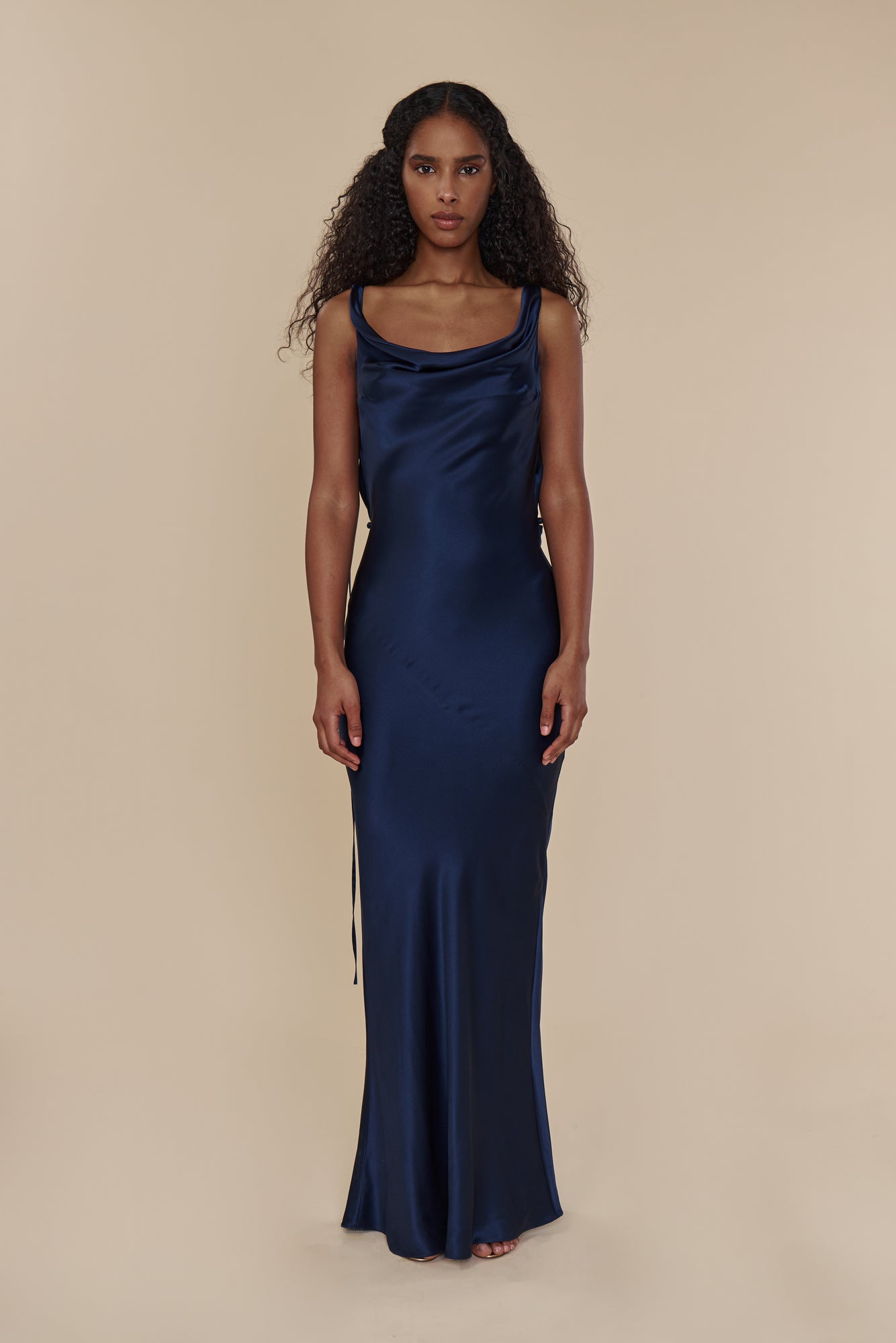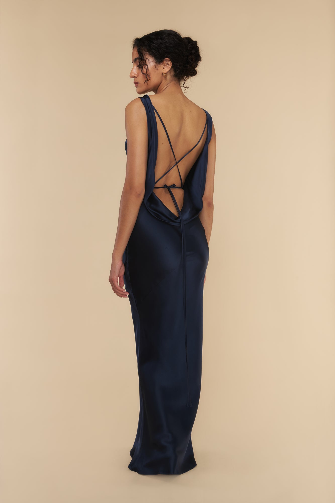 - Designed n New York City and proudly made in Shenzhen, China. The plunging back cowl gown can we worn in a variety of ways and has functional ties at the back of the neck with silk buttons at the waist. Shop all Plunging Back Cowl colorways here. This made-to-order style is expected to ship within 3-4 months. Find out more here.