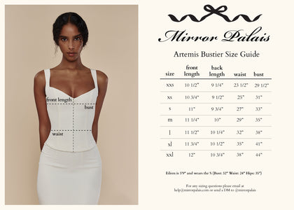 Designed and proudly made in New York City, USA. The Artemis Bustier is made on the matte side of Crepe Back Satin. The back laces up with a fully adjustable corset and silk charmeuse ties. The boning throughout the corset adds shape and enhances the wearer's natural silhouette. Shown with the Artemis Skirt. This made-to-order style is expected to ship within 3-4 months. Find out more here.