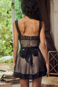 - Designed in New York City and proudly made in Shenzhen, China. This stunning mini dress comes with hand sewn lace, a crinkle chiffon overlay and steel boning on the sides. Also features an invisible zipper, self covered buttons and a hook-and-eye at top back closure. The sleeves also have a removable flower appliqué to style as you like.