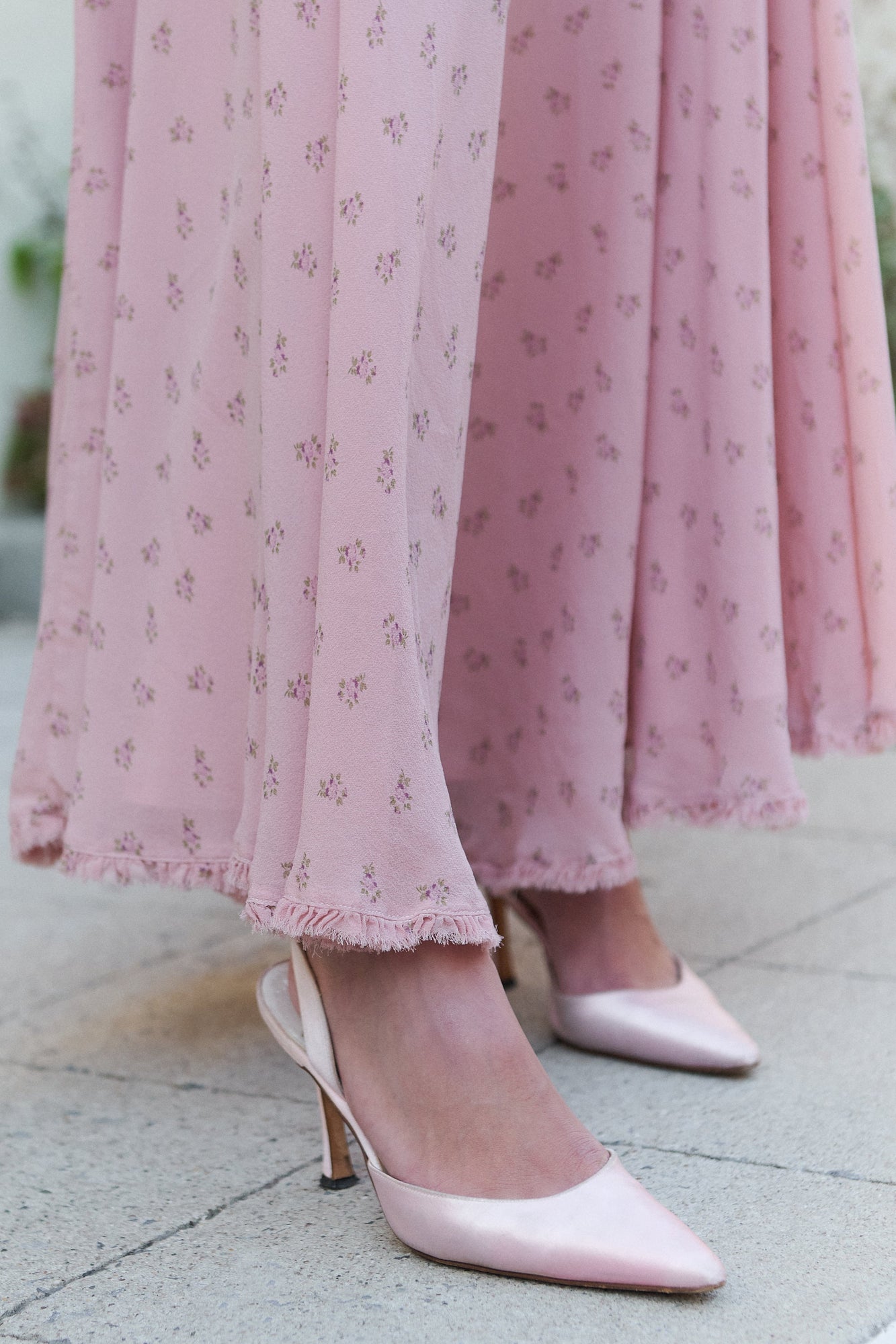 - Designed in New York City and proudly made in Jiaxing, China. Floral printed mid-rise silk chiffon skirt with silk lining. Features a ruffle trim that lines the hem. Closes at the hip with silk covered buttons and a hook-and-eye closure for extra security.