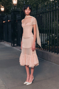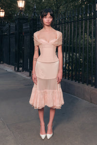 Sarah is 5'6" and wears the XS (Bust: 30" Waist: 23" Hips: 32")