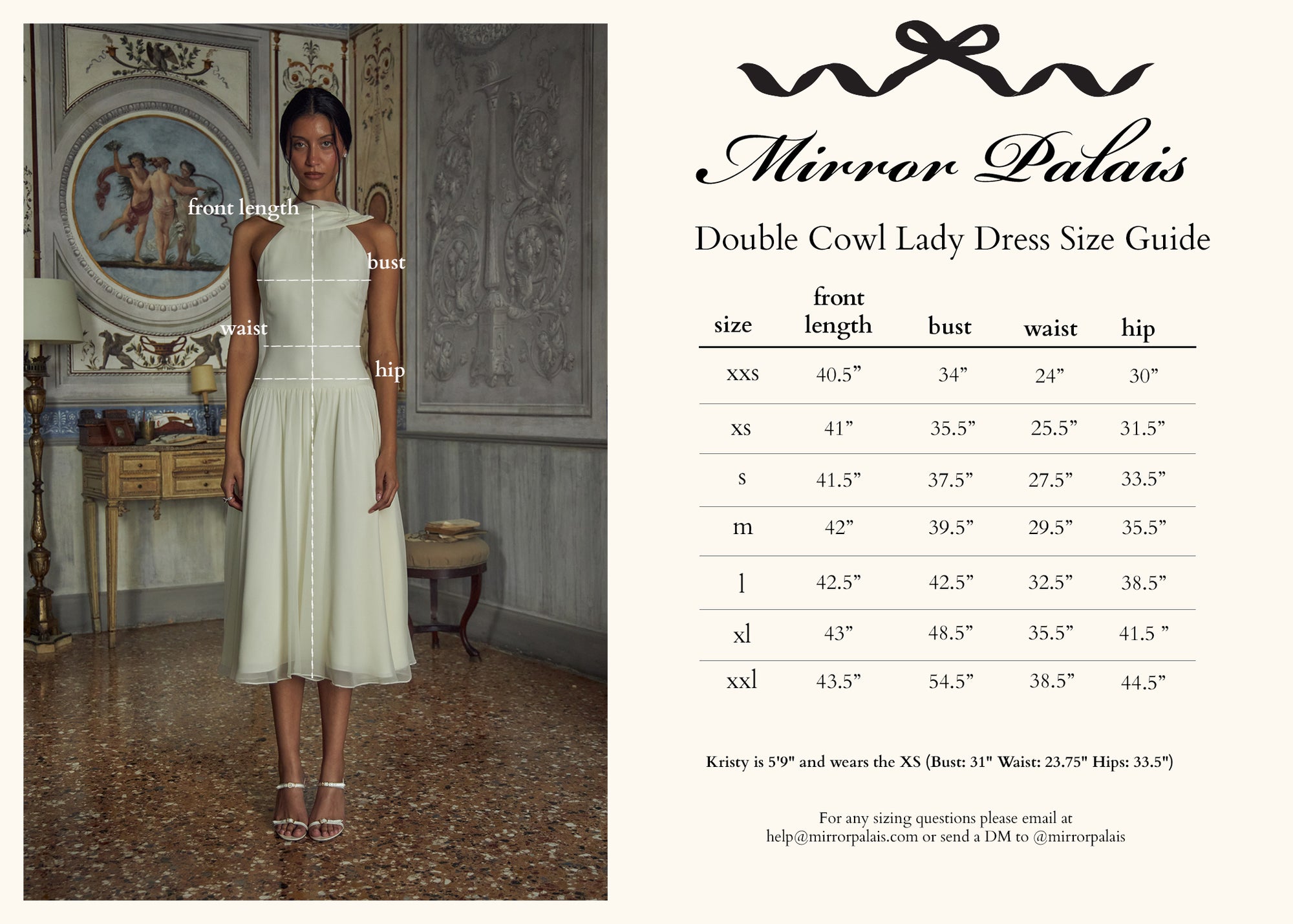 - Designed in New York City and proudly made in Shenzhen, China. Drop waist lady length dress with cowl neckline in the front and back. Shirred, double lined skirt. Invisible zipper and hook-and-eye closure at center back. Back cowl attached to adjustable straps with ring and sliders.