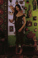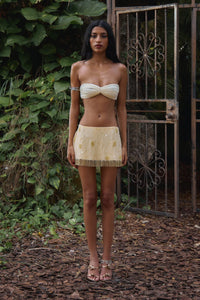 Daniela is 5'8" and wears the size XS. Bust: 32", Waist: 25.5, Hips: 37"