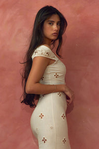 Daniela is 5'8" and wears the S (Bust: 32" Waist: 25.5" Hips: 37")