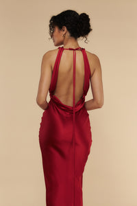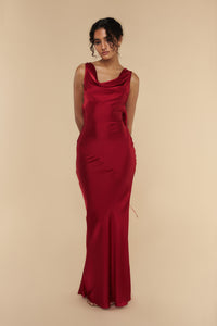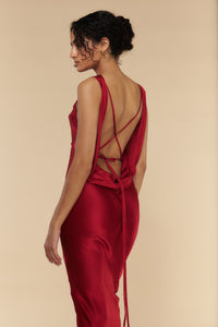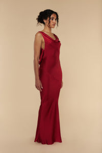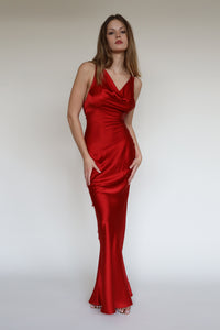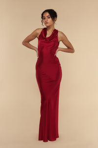Designed in New York City and proudly made in Shenzhen, China. Plunging back cowl gown can we worn in a variety of ways that has functional ties at the back of the neck and silk buttons at the waist. Shop all Plunging Back Cowl colorways hereThis made-to-order style is expected to ship within 3-4 months. Find out more here.