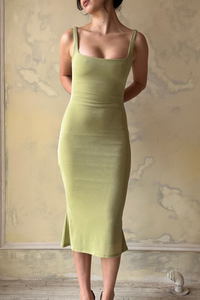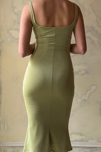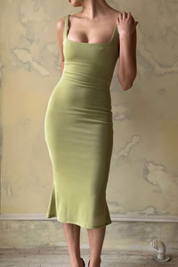 Designed and proudly made in New York City, USA. Stretch lady length bodycon dress with slight flare at hem. Shop all the Supermodel styles. Sample Sale Items are Final Sale. No refunds or exchanges will be offered, no exceptions. Condition: All in good condition with barely noticeable defects. The XS has slight fabric damage (shot on model). The M has a small fabric error front left side (second to last image). The L has discoloration on bottom of dress (last image).